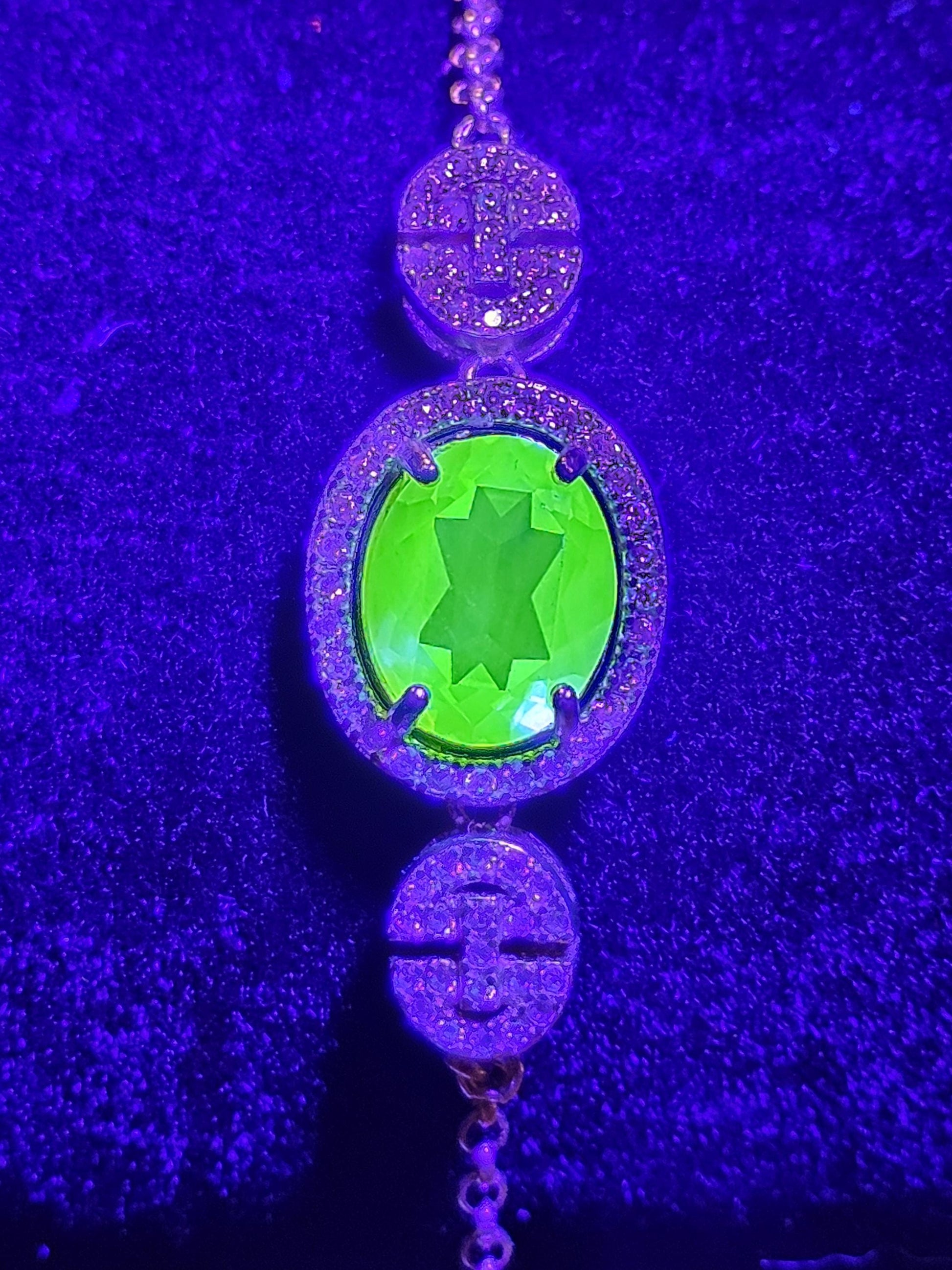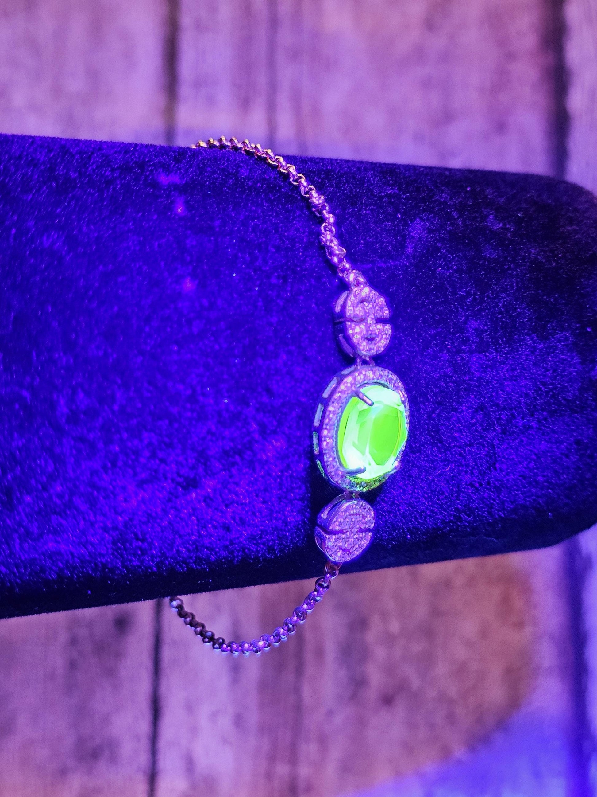 Uranium Glass Bracelet new Sterling Silver containing a vintage 10x8 mm Uranium glass Oval cut stone that glows under black / UV light