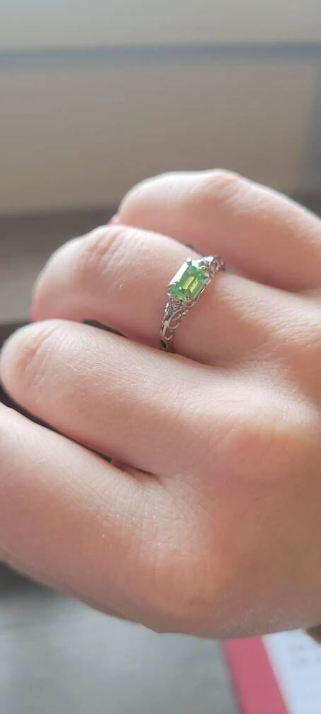 Uranium Glass Emerald cut Art Deco Ring size 4 to 10.5 in new Sterling Silver with Uranium glass stone that glows under black / UV light