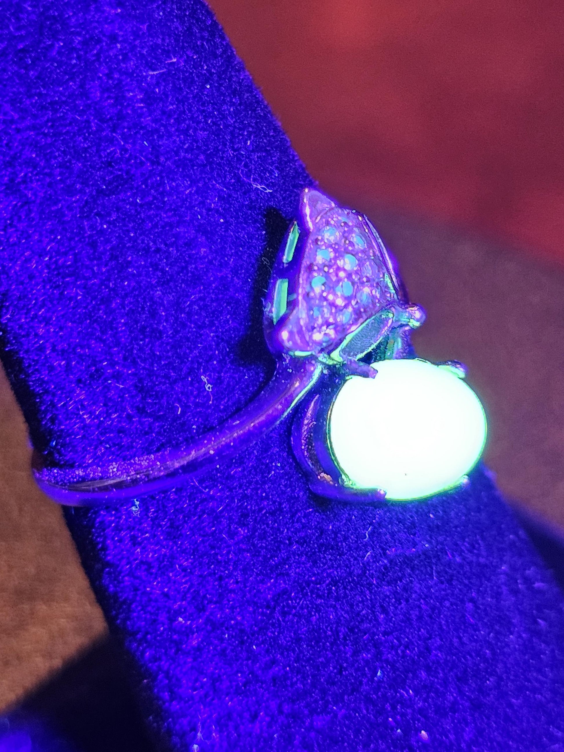 DISCLAIMER I stuck a little uranium glass bead inside the head of the fox so that it's eyes would also glow. This ring was not designed for that. I did it because I could, and I thought it looked cool. There is nothing holding that bead in except a strong epoxy. I did not charge any extra for the bead because I wish to take no responsibility if the bead falls out. consider it a free gift / party bonus.
