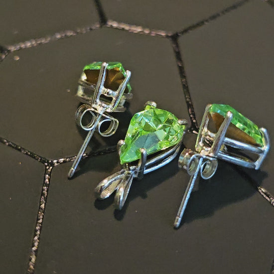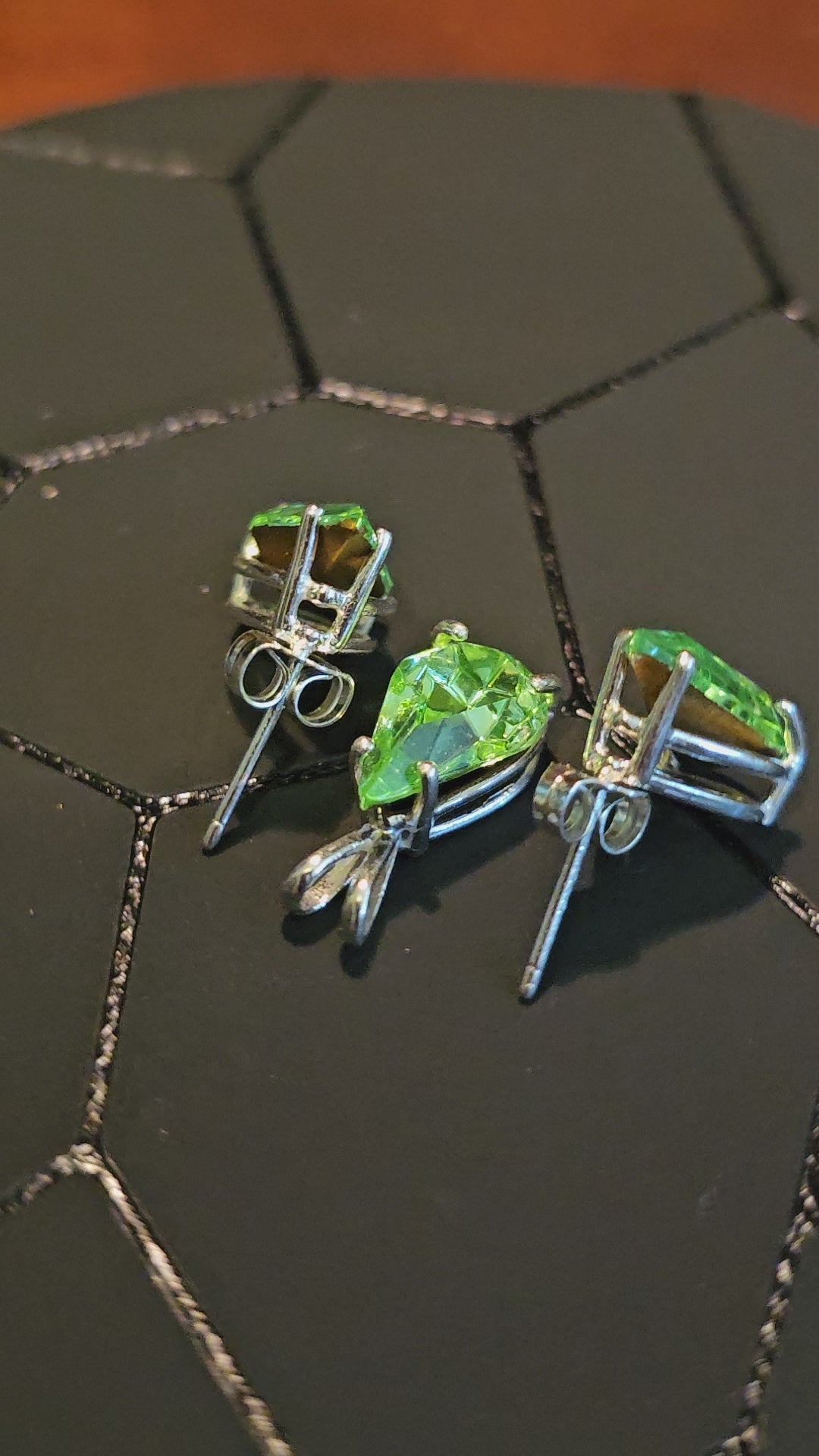 The equally beautiful earrings are also in the Teardrop style in new Sterling Silver, and also contain vintage 13x8 mm Uranium glass Pear cut stones.