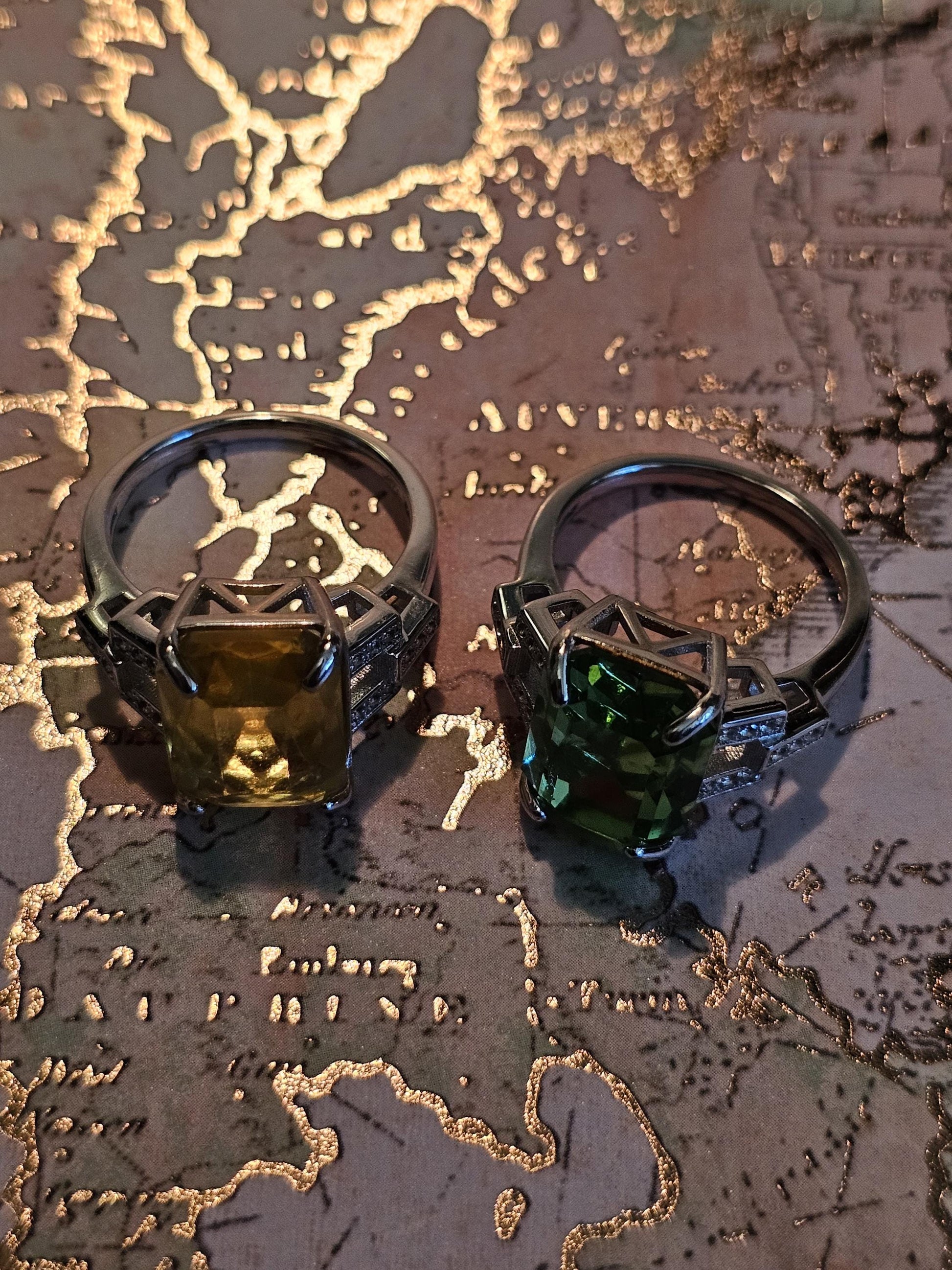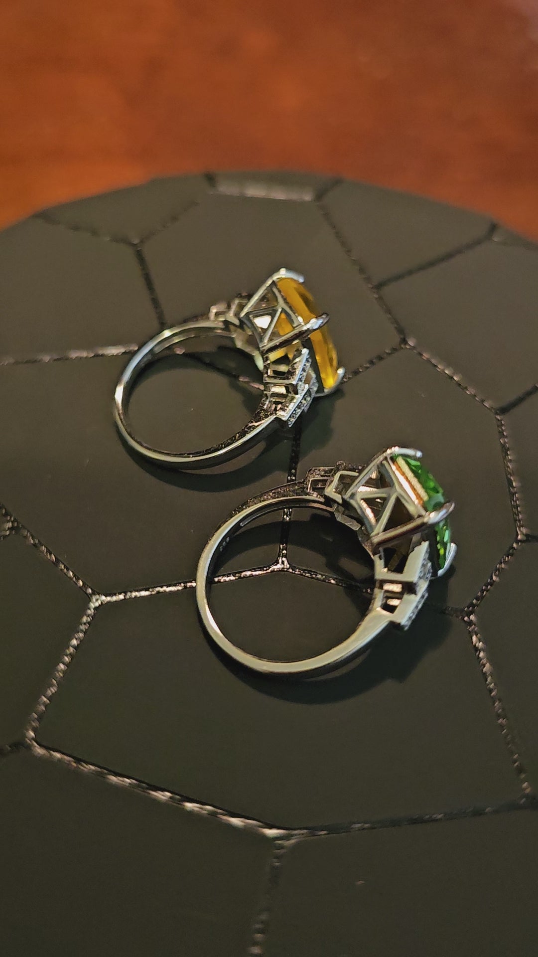 Uranium Glass Ring new Sterling Silver in a size 7 with a Yellow or Green Emerald cut Uranium glass stone that glows under black / UV light