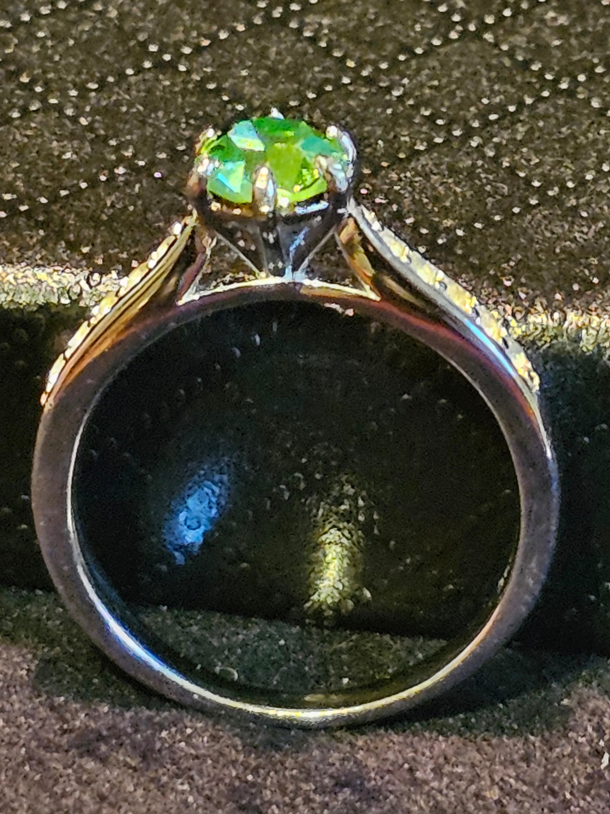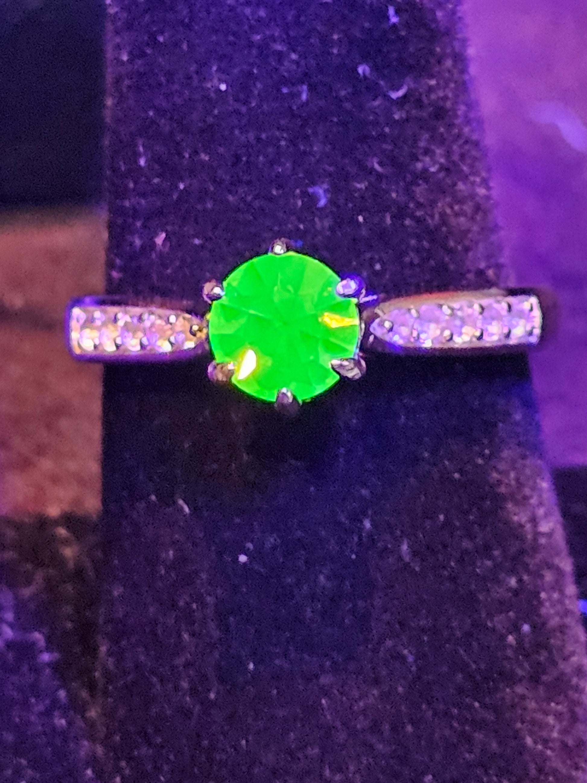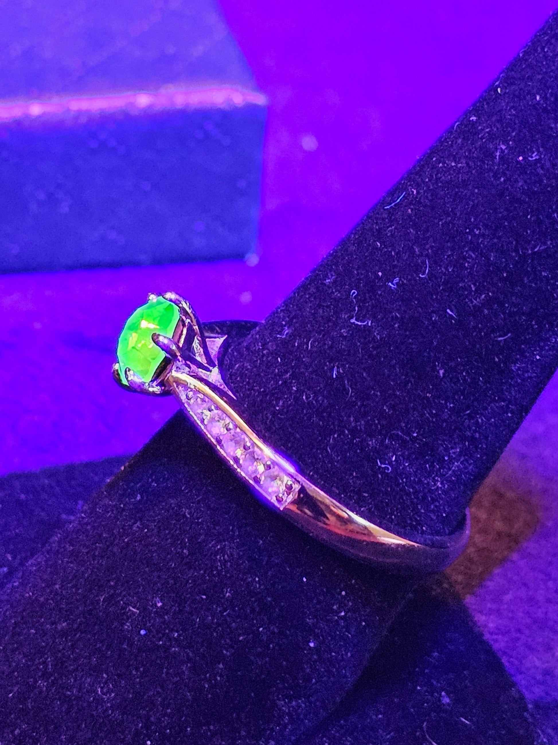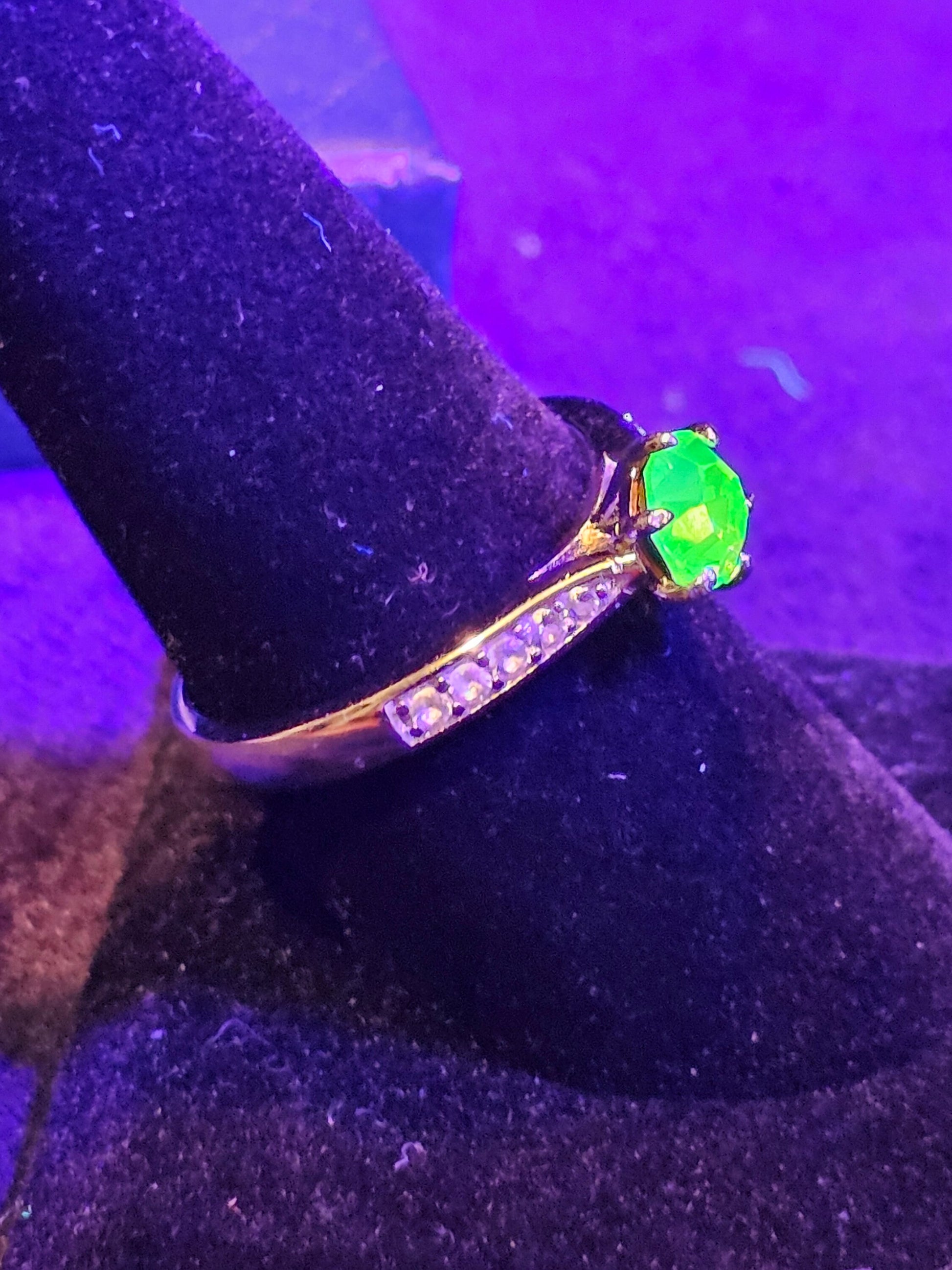 Any ring that you see that has a 6 mm Round cut stone in it, for example this ring, if you would rather have a Pink Uranium glass stone, a Yellow Uranium glass stone or a Yellow Cadmium glass stone in this ring just ask and I can put one together for you. You can see examples in the last two pictures.