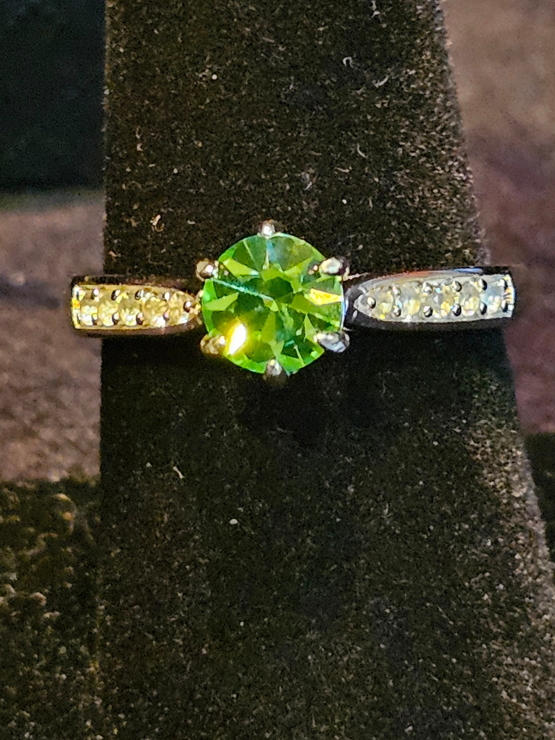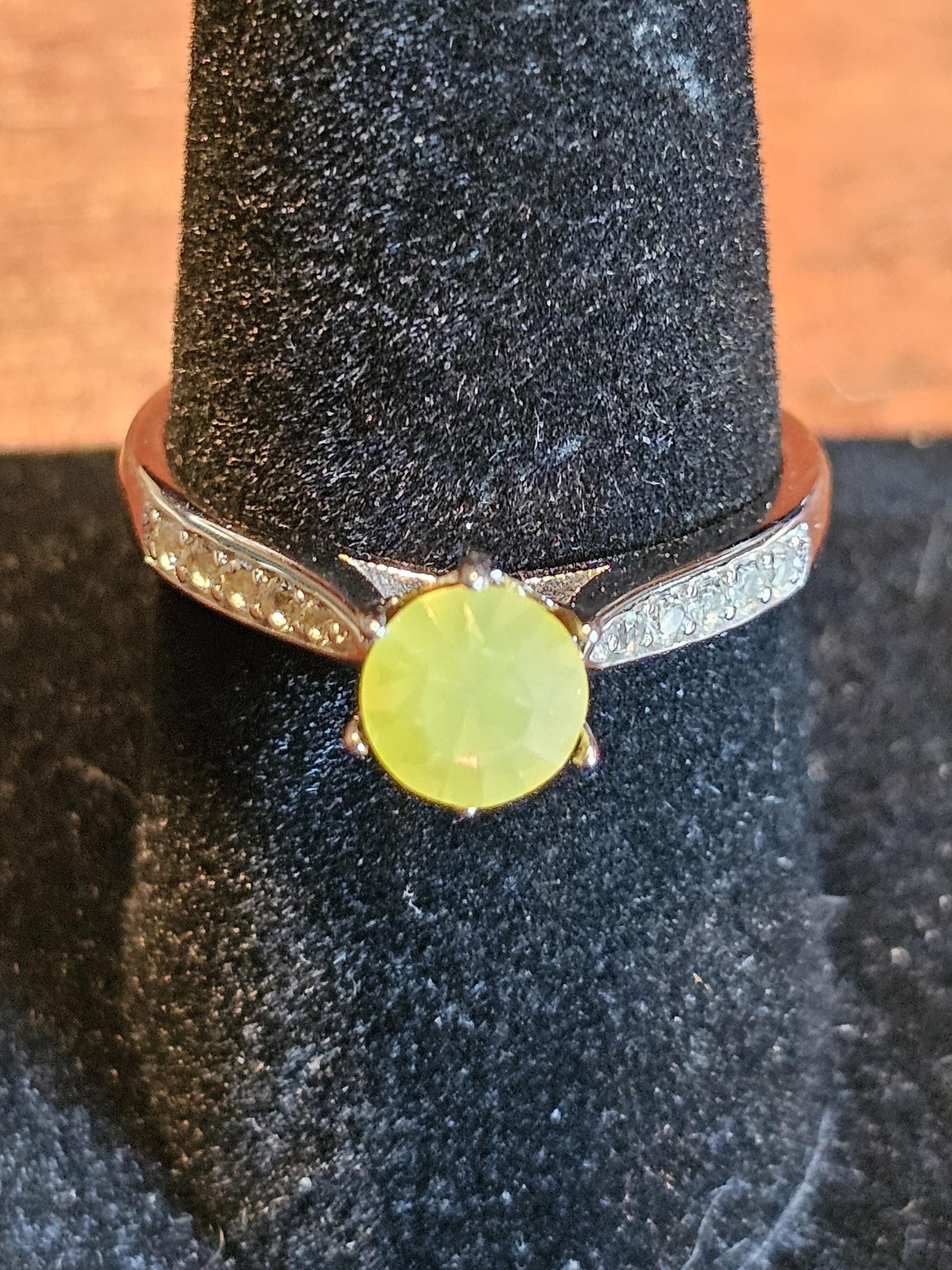 This elegant new Sterling Silver ring comes in size 4, through size 11. This ring contains a vintage 6 mm Round cut Uranium glass stone.