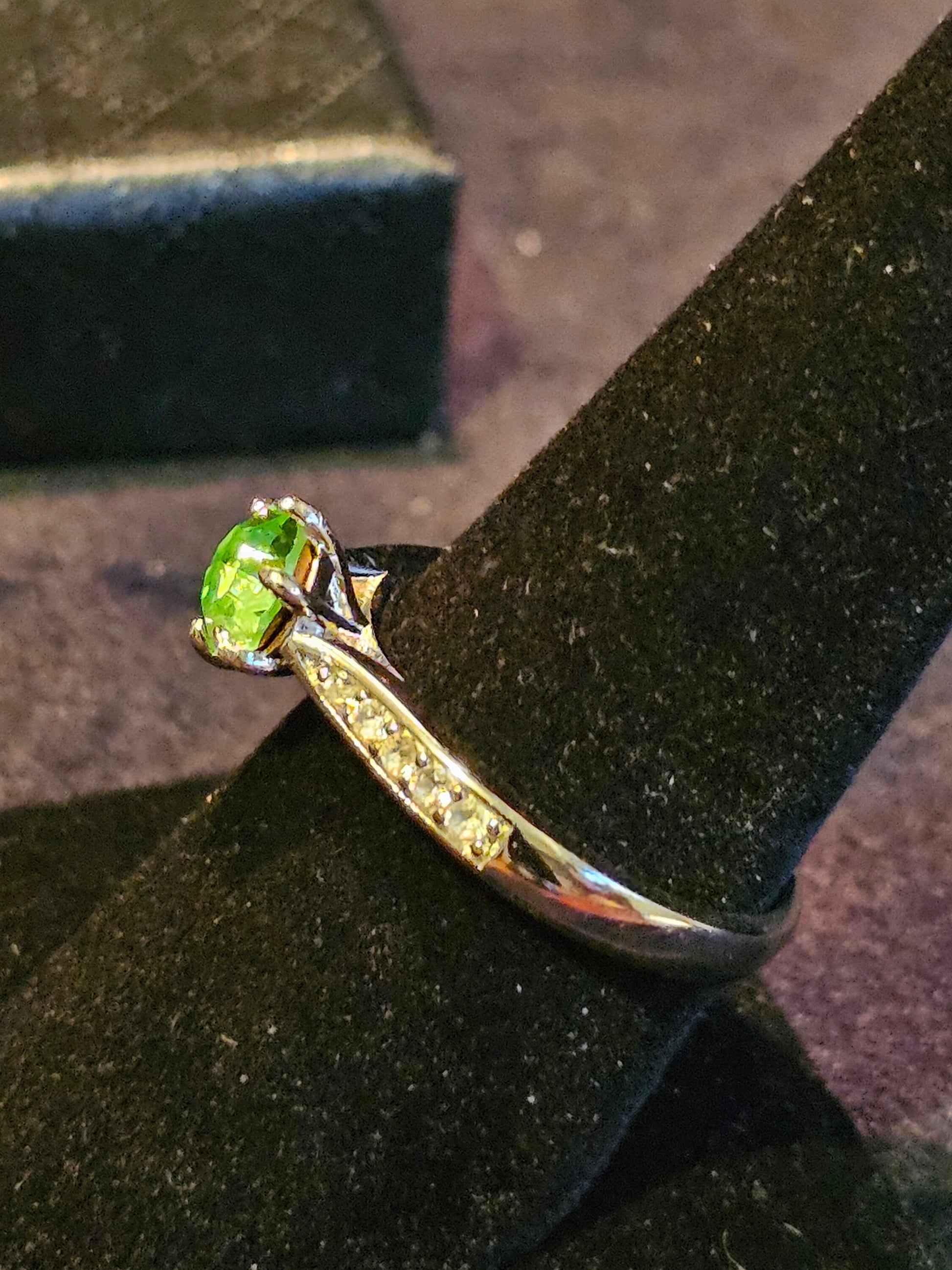 I thought I'd share the history of this Green Stone. I came across someone from the UK, through a Uranium glass group, that had New Old stock some of it still in its original packaging. They had somehow made connections with a German company that bought the contents of a Czechoslovakian Warehouse that had been boarded up for the past 40 years. Part of that inventory was these Uranium glass stones. I just thought it was an interesting history and you might like to know about the journey the stone made to arrive in your piece of jewelry.